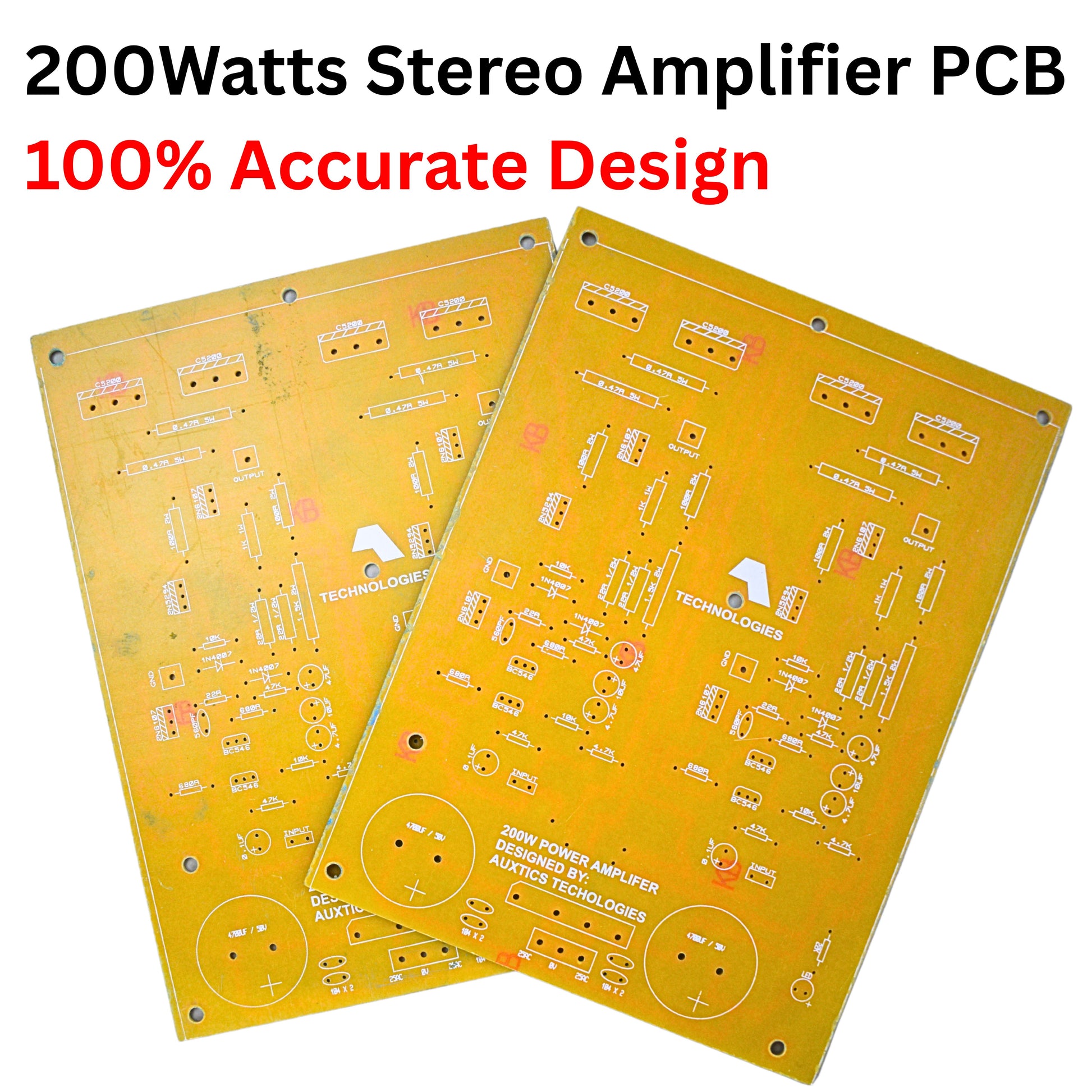 Build your own high-power audio system with this 200W Amplifier Bare PCB set, including a matching Bass Tone Pre-Amplifier PCB, exclusively designed by Auxtics Technologies.